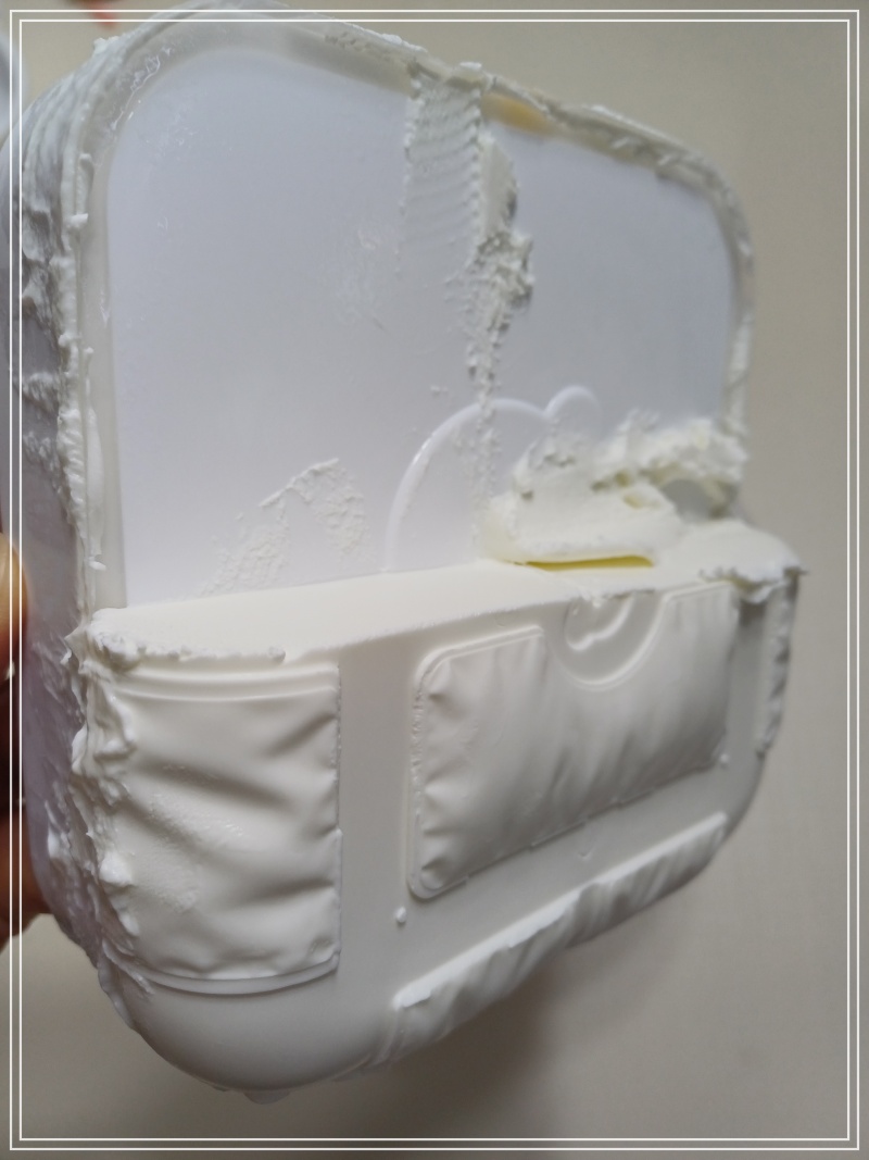- 시간이 지나고 누름판을 분리하면 아래와 같이 누름판에 달라 붙은 꾸덕한 그릭요거트를 볼 수 있습니다.